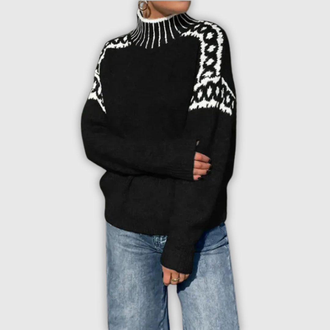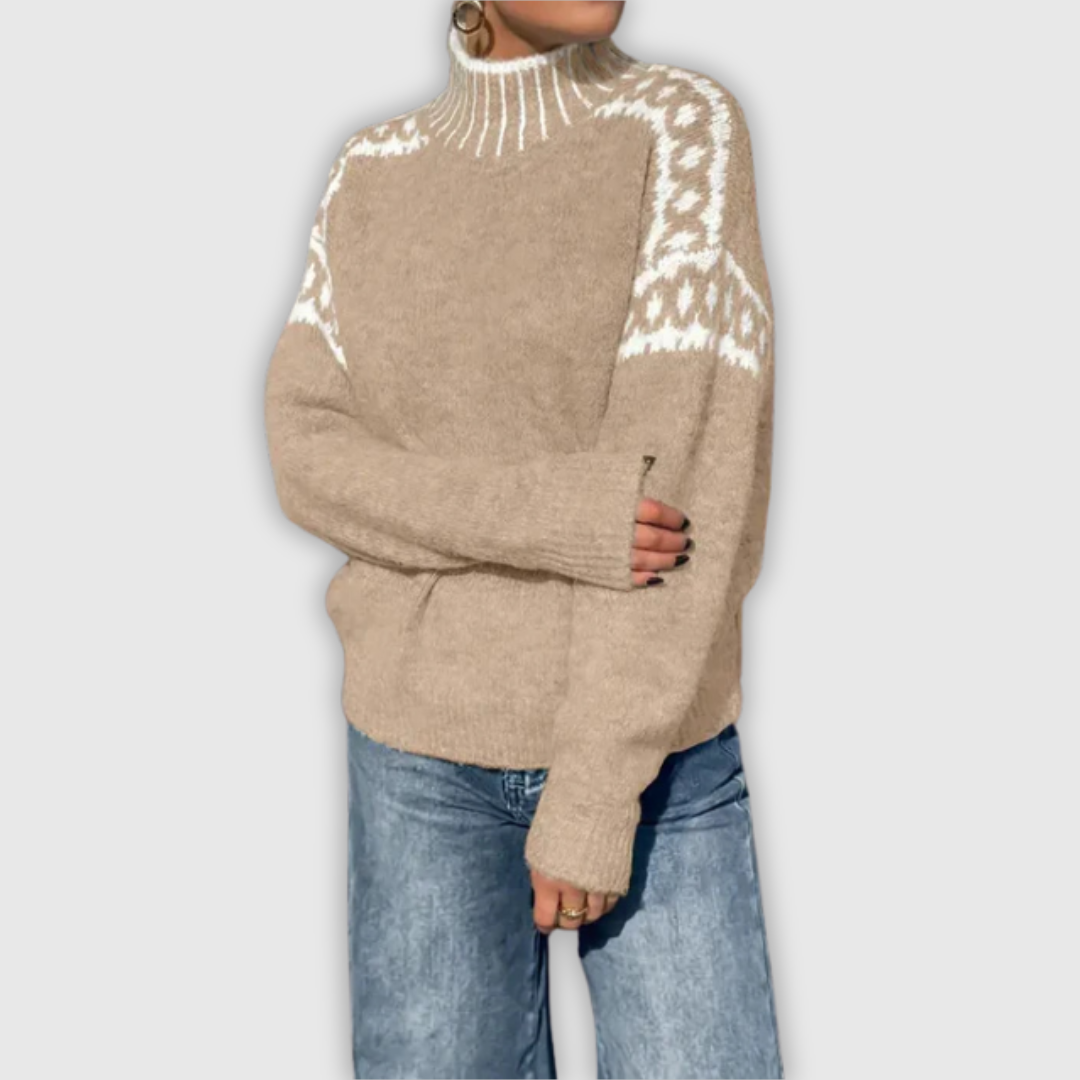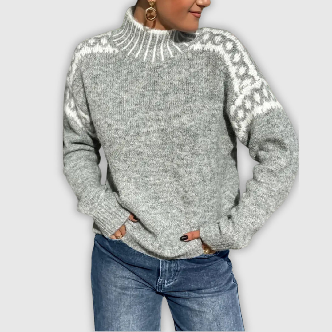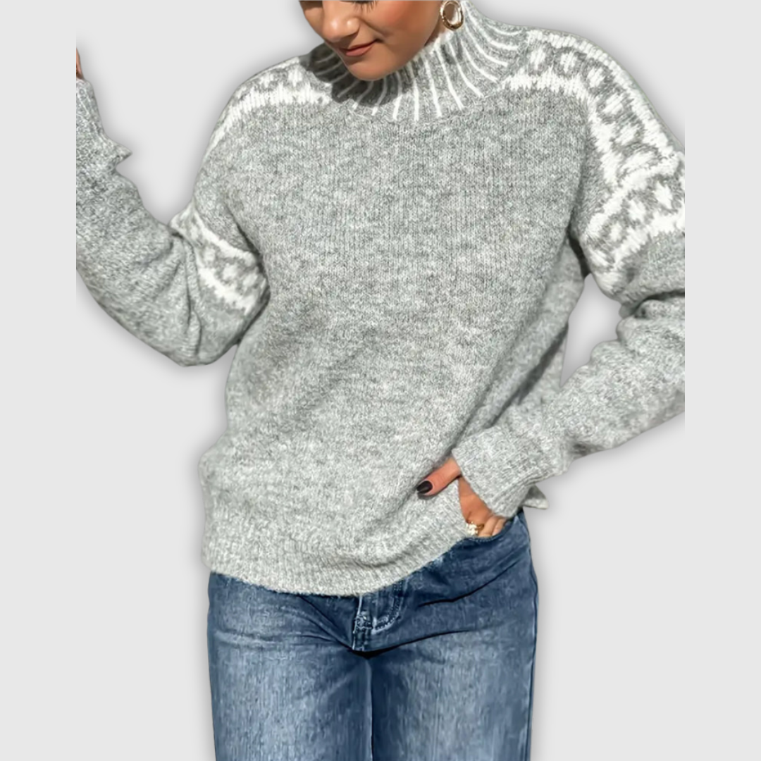 Livia to ciepły, miękki, dziany sweter o prostym i ponadczasowym kroju. Idealny do noszenia na co dzień — pasuje do jeansów, legginsów i spódnic.