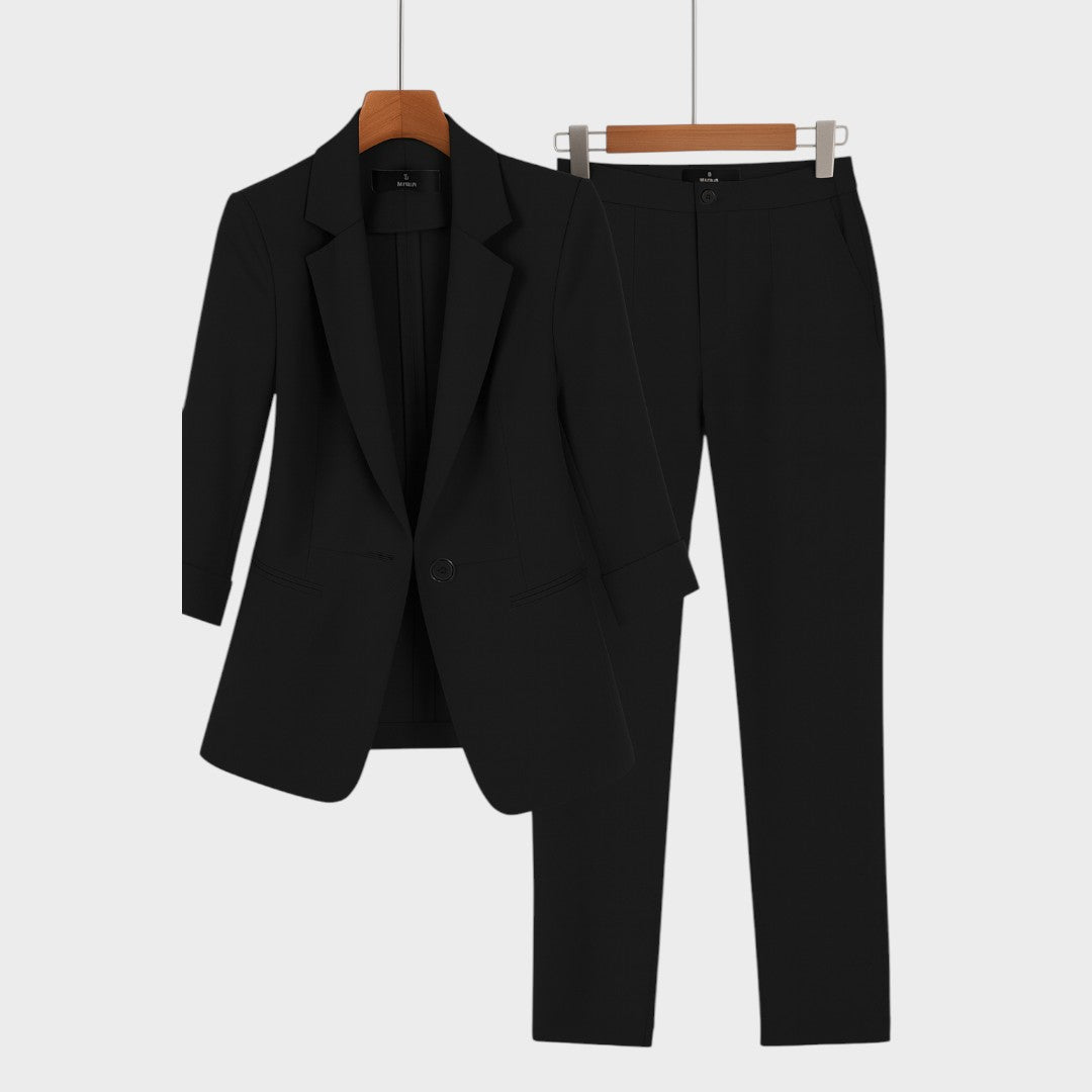 - Dopasowany krój marynarki z lekką strukturą dla profesjonalnego wyglądu.
