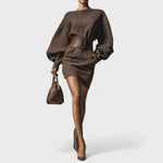 Sukienka Cléa to idealne połączenie elegancji i praktyczności. Wykonana z ciepłej i strukturalnej dzianiny, otula sylwetkę miękkością, podczas gdy pasek w talii podkreśla kształty z nutą kobiecości i charakteru. Szerokie rękawy i krótki krój zapewniają harmonijną równowagę między nowoczesnością a komfortem, idealne na sezon w stylu.