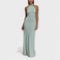 Długa sukienka z wiązaniami wokół szyi i satynową teksturą