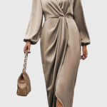 Wejdź w elegancję nocy z Andreą, sukienką o płynnej sylwetce, zaprojektowaną, aby podkreślić i oczarować. Z głębokim wycięciem w kształcie V, miękkimi bufkami i marszczonym paskiem, który akcentuje figurę, Andrea emanuje wyrafinowaniem przy każdym ruchu. Boczne rozcięcie dodaje nowoczesnego i zmysłowego akcentu, idealnego na wieczory, które wymagają niezapomnianego stylu.