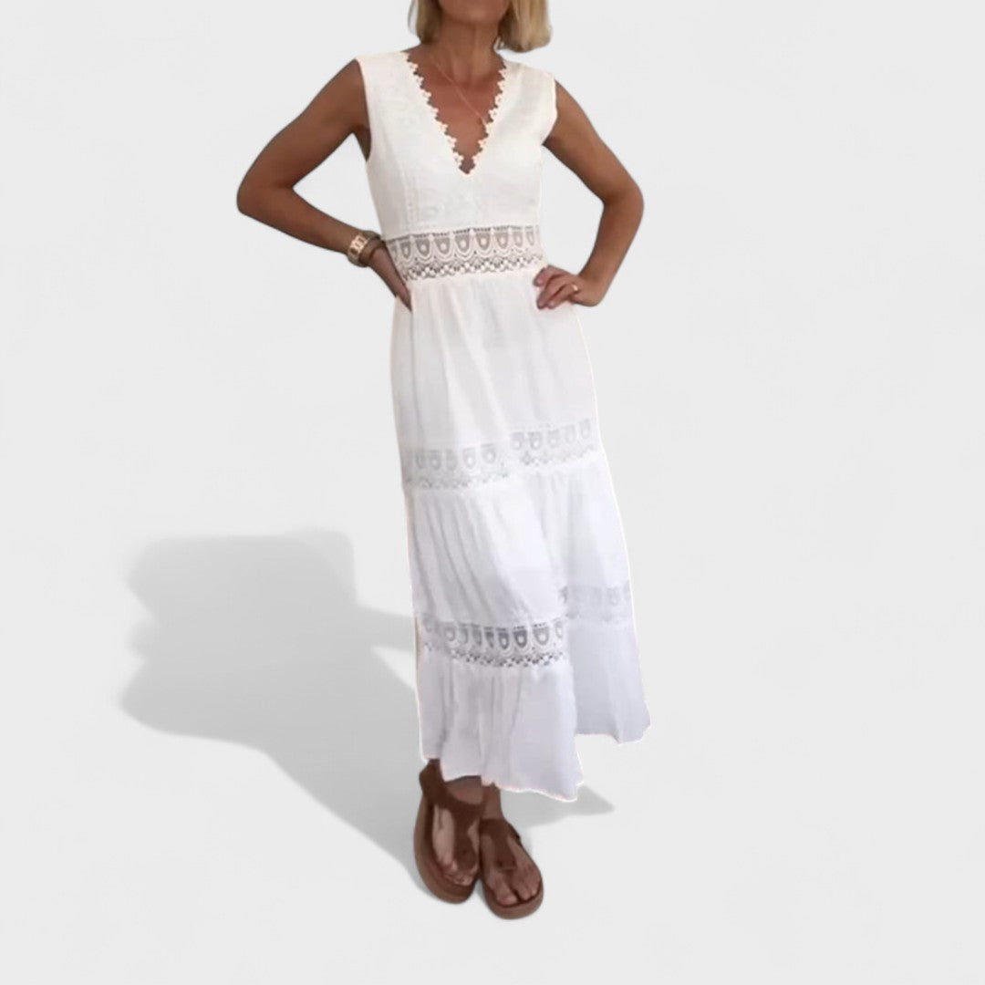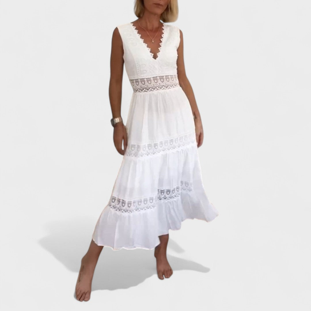 Elena - Elegancka Sukienka Chipkowa z Dekoltem w Kształcie V