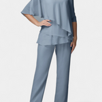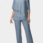 Wyrafinowana elegancja z luźną strukturą. Zestaw Lana łączy bezrękawnik z szerokim dekoltem oraz spodnie z wysokim stanem i zwiewnymi nogawkami, tworząc wysublimowany i wygodny sylwet. Jego przewiewny i lekki materiał sprawia, że jest idealnym wyborem na delikatny i pewny siebie wygląd.