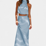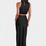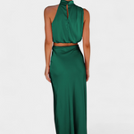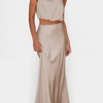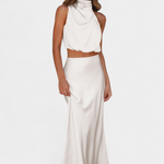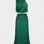 Jasna i zapadająca w pamięć, ta kombinacja spódnicy została zaprojektowana, aby wyróżniać się dzięki drapowanej górze z dekoltem halter, delikatnym detalom i sylwetce, która elegancko się porusza. Zapewnia lekkie i wyrafinowane uczucie, które doskonale podąża za tobą.