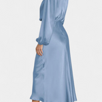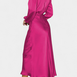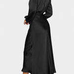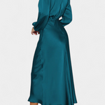 Kobieca, elegancka i o wyrafinowanym stylu, sukienka Maria łączy płynny maxi sylwetkę z ustrukturyzowanym wysokim kołnierzem i spódnicą z kolorowymi detalami. Jej projekt jest idealny dla tych, którzy chcą podkreślić wyrafinowanie w specjalnych okazjach, nie rezygnując z komfortu.