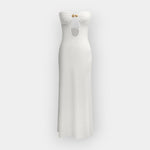 Elegancka i zwiewna, ta sukienka bez ramiączek podkreśla kobiecość w dyskretnym stylu. Idealna na słoneczne dni i letnie wieczory z elegancją i komfortem.