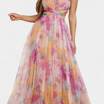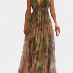 Maxi sukienka Magdalena w kolorowy wzór i dekolt w kształcie V