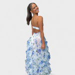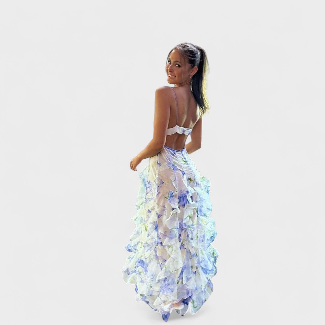 Ta długa kolorowa sukienka z falbanami wprowadza nutę wyrafinowania i elegancji w każdej sytuacji. Dzięki kobiecemu sylwetce i luksusowym detalom, oferuje doskonałą równowagę między komfortem a blaskiem. Idealna na uroczyste okazje, przyjęcia lub specjalne chwile, kiedy chcesz zabłysnąć.