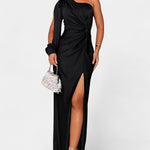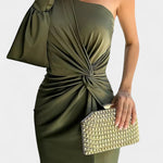 Załóż ją i poczuj, jak elegancja otacza cię, przekształcając każdy krok w wyraz czystej wyrafinowania. Dzięki asymetrycznemu dekoltowi, uformowanemu drapowaniu i związanej talii, Andrea porusza się płynnie, aby podkreślić twoją sylwetkę i zostawić ślad na każdym specjalnym wydarzeniu.