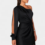 Sukienka Andrea Asymetryczna z Drapowaniem na Jedno Ramię