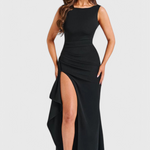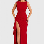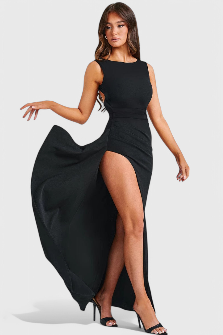 Stworzona, by oczarować, Sukienka Wieczorowa Ivana reprezentuje złożoną elegancję. Z wąskim sylwetką, luksusowym satynowym wykończeniem i dramatycznymi odkrytymi plecami, ta sukienka ma pełną długość i jest idealnym wyborem na wyjścia. Wysokie rozcięcie dodaje ruchu i atrakcyjności, czyniąc ją idealną na gale, formalne kolacje i chwile na czerwonym dywanie.