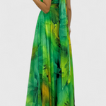 Lekki romantyzm z sylwetką, która unosi się z każdym krokiem. Sukienka Antonii wykonana jest z przezroczystego szyfonu z delikatnym kwiatowym wzorem i eleganckim dekoltem halter, który subtelnie podkreśla ramiona. Jej swobodny i płynny krój oferuje relaks z eterycznym urokiem.