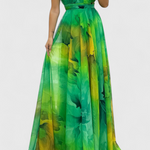 • Sukienka maxi z szyfonu z kwiatowym wzorem, inspirowana romantyzmem