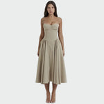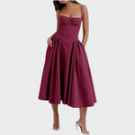 Imponująca i ponadczasowa sukienka, która otula sylwetkę i oferuje nieodpartą elegancję. Regulowany gorset z cienkimi ramiączkami podkreśla kobiecość, podczas gdy zwiewna spódnica zapewnia komfort i swobodę ruchów. Idealna na wieczorne wyjścia, eleganckie zaproszenia i specjalne chwile.
