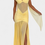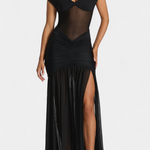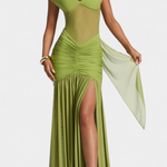- Niski tył z dekoltem w kształcie litery V i rozcięciem na udzie dla odważnego i wyrafinowanego efektu