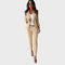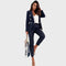 Marynarka damska Bożena ucieleśnia klasyczną wyrafinowanie z nowoczesnym akcentem. Dwurzędowy design marynarki z eleganckimi metalowymi guzikami i idealnie dopasowanymi spodniami tworzy wyrazisty, wyrafinowany wygląd, który emanuje pewnością siebie i elegancją. Niezależnie od tego, czy w biurze, na spotkaniach biznesowych, czy na wieczornych uroczystościach – Bożena gwarantuje nieskazitelny sylwetkę i wyrafinowaną obecność.