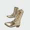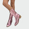 damskie **kowbojki w metalicznym różowym** kolorze, które przyciągają wzrok swoim unikalnym charakterem. Posiadają **bogaty haftowany motyw** i boczny zamek błyskawiczny dla łatwego zakupu, podczas gdy niski drewniany obcas zapewnia komfort i styl przy każdym kroku. Idealne do odważnych kombinacji street-style i modowych wystąpień, które się wyróżniają.