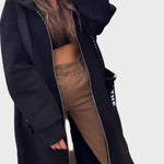 Długi płaszcz z kapturem, który łączy elegancję z praktycznością. Jego wygodne dopasowanie sprawia, że jest idealny do codziennego użytku, a jego ponadczasowy design dodaje stylu każdej kombinacji ubrań. Element, który zapewnia ciepło i wyrafinowanie w chłodne dni.