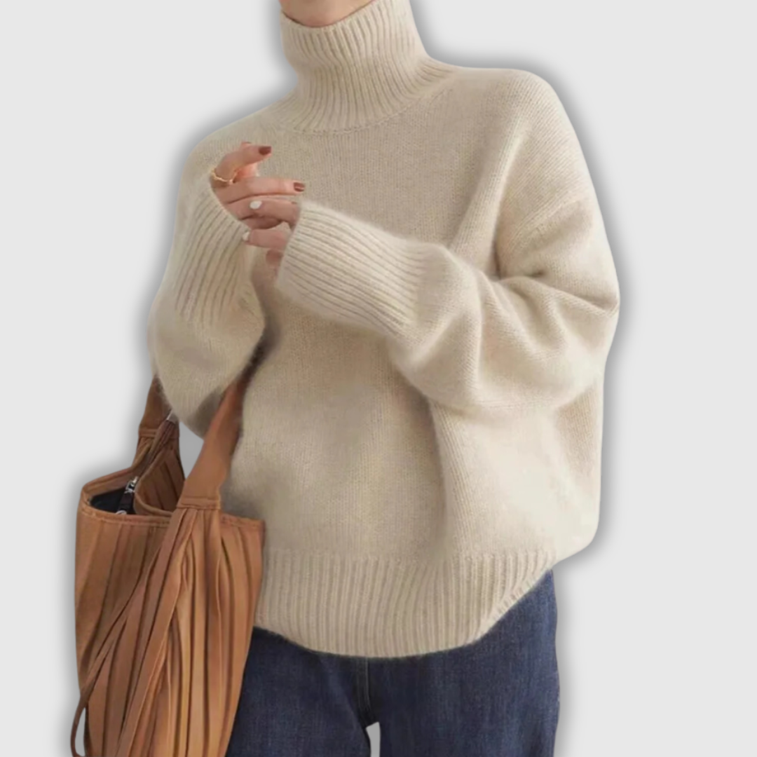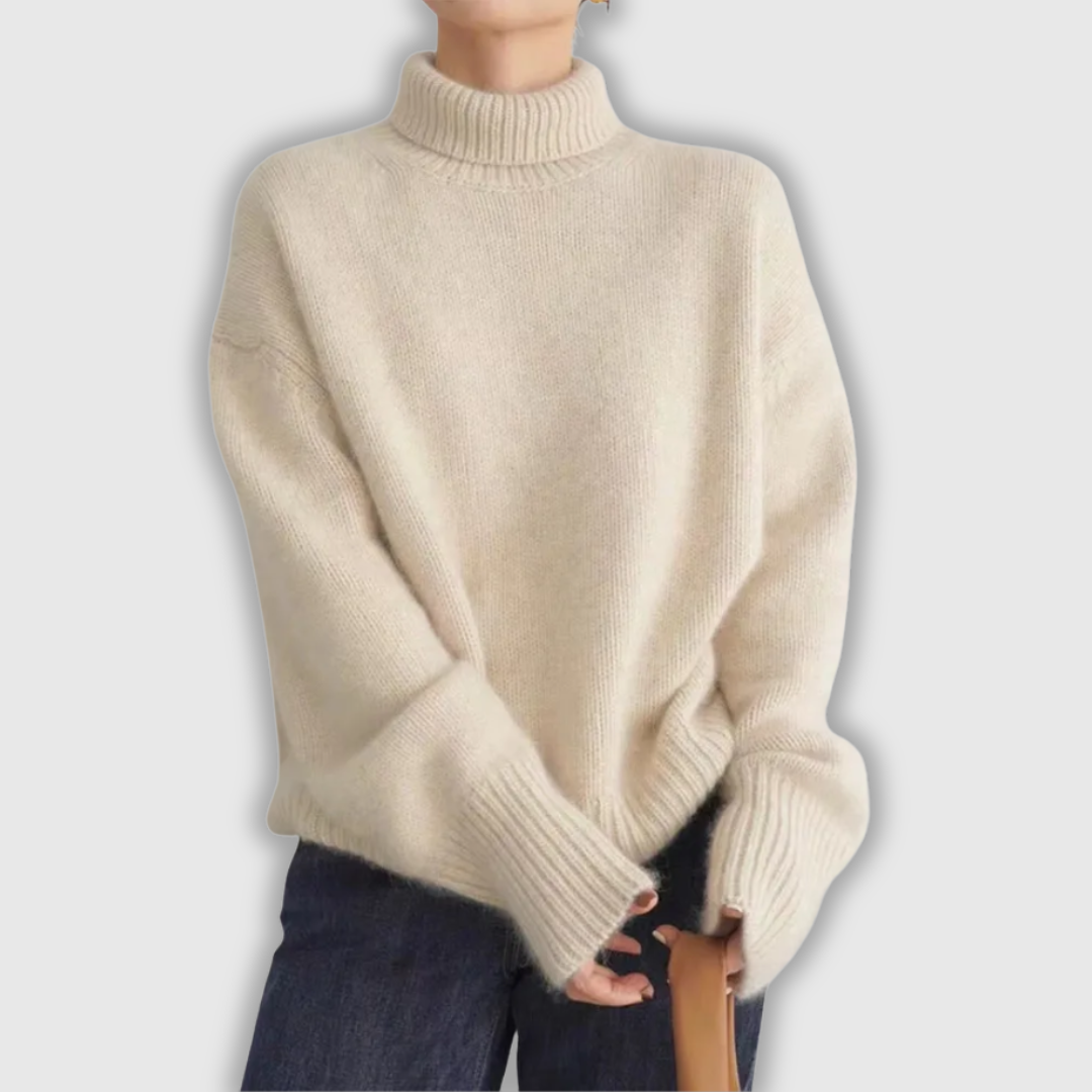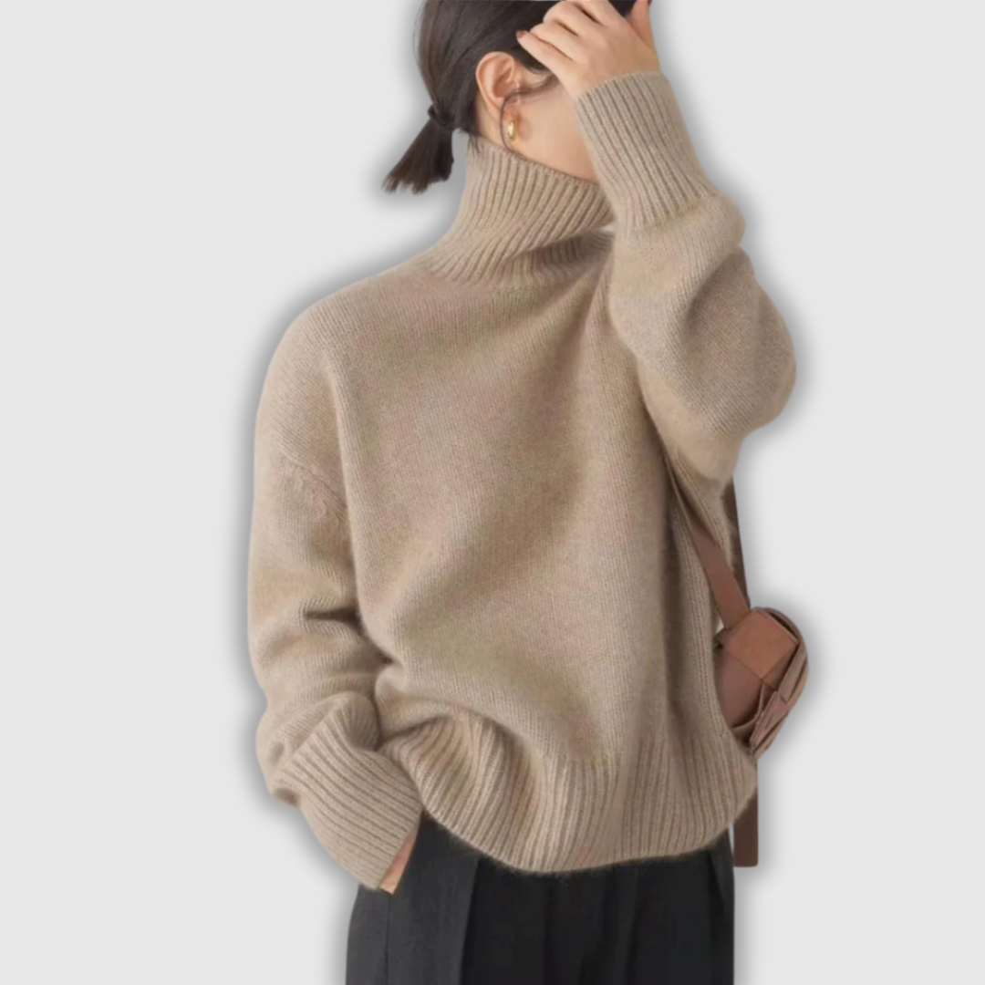 Izabela to luksusowy, miękki golf wykonany z domieszką kaszmiru, który otula ciepłem i elegancją. Jest lekki, przyjemny w dotyku i idealny do codziennych i wyjściowych stylizacji.
