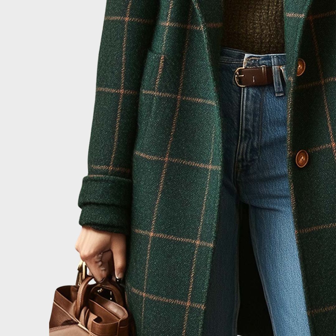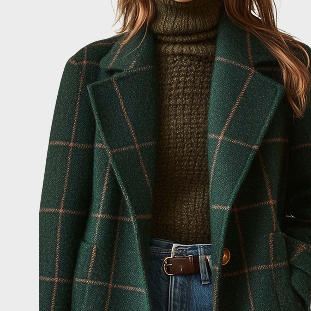 Jej wyszukany wzór w kratę i kołnierz dodają odrobinę cichego luksusu — tej "nienachalnie złożonej" pewności siebie, na którą każda kobieta zasługuje.
