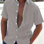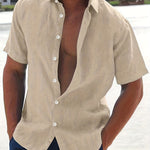 Wysokiej jakości materiał: Koszula z krótkim rękawem wykonana jest z mieszanki 70% bawełny i 30% lnu, co zapewnia oddychalność i komfort, idealna na ciepłe letnie dni.