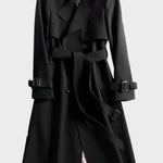 Ten płaszcz to połączenie klasyki i nowoczesnej wizji. Z perfekcyjnie wykonaną krojem, podwójnymi guzikami i paskiem do zaciśnięcia w talii, podkreśla sylwetkę i nadaje wyrafinowania każdej stylizacji. Detale z klamrami oraz wysokiej jakości podszewka nadają mu luksusowy wygląd. Odpowiedni zarówno na co dzień, jak i na specjalne okazje.