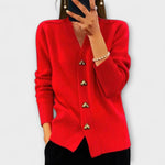 Odkryj kardigan Mari – twój nowy zimowy ulubieniec! Ten damski kardigan z dekoltem w kształcie V w stylu preppy to idealne połączenie ciepła i elegancji.