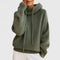 Luźna, ale kobieca sylwetka, która pięknie się układa, nie tracąc kształtu. Kaptur i sznurki dodają nowoczesnego charakteru.