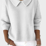 Elegancki sweter z wyraźnym kołnierzem i prostą linią. Miękka, oddychająca dzianina dopasowuje się komfortowo, nie drapiąc, a ściągacze i mankiety utrzymują kształt przez cały dzień. Łatwy do warstwowania i łączenia — działa równie dobrze z dżinsami, spodniami czy spódnicą, od biura po weekend. Minimalistyczny sylwet, który wygląda schludnie bez wysiłku.