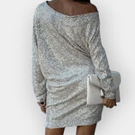 Sukienka, która przyciąga wzrok — imponujące cekiny w kontraście tworzą oszałamiający efekt z każdym krokiem. Idealna na błyszczące wyjścia i specjalne chwile.