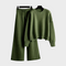 Ten zestaw z dzianiny łączy miękkość i styl w jednym. Oversized górna część z nowoczesnym krojem i szerokie spodnie tworzą zrelaksowaną, ale wyrafinowaną sylwetkę, idealną na dni, kiedy chcesz być wygodna, nie rezygnując z elegancji.